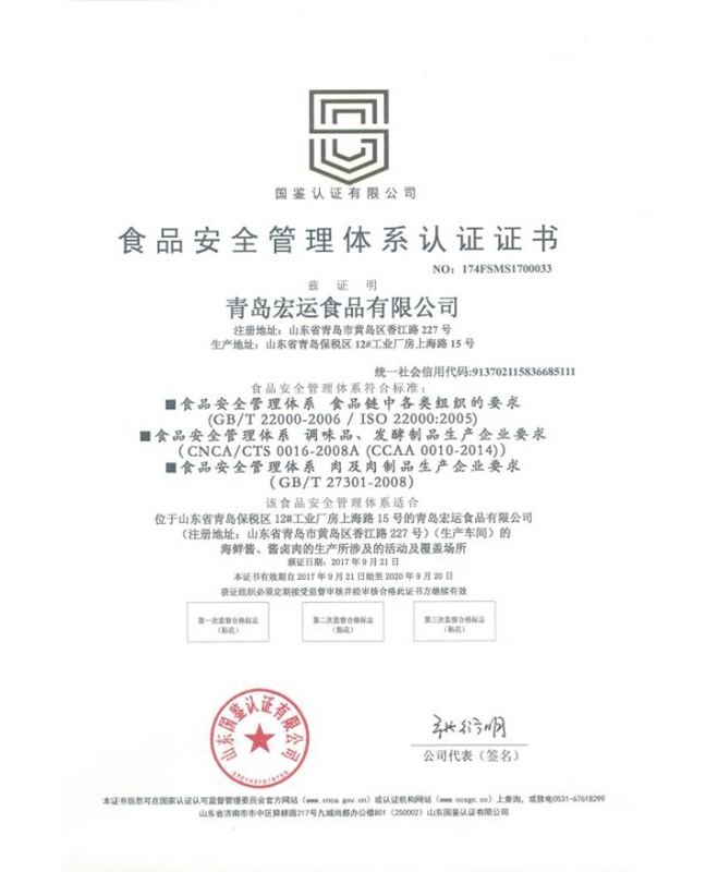 食品安全管理體系認(rèn)證證書(shū)