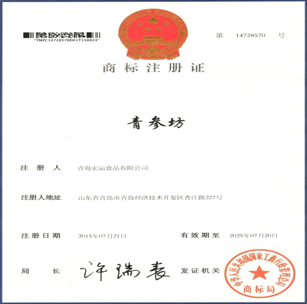 青參坊-商標(biāo)注冊(cè)證